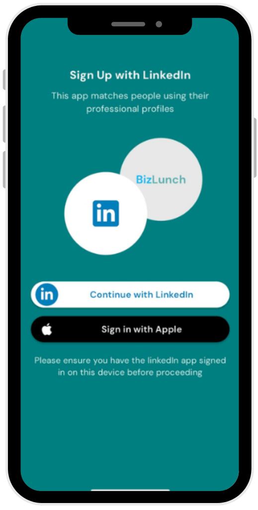 NOTE: Bizlunch app requires an active Linkedin Account.
